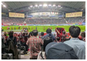 ゴールが決まるたびに周りのサポーターと肩を組んだり、応援に合わせて手拍子をしたりと、初めての体験に目を輝かせていました✨😛
